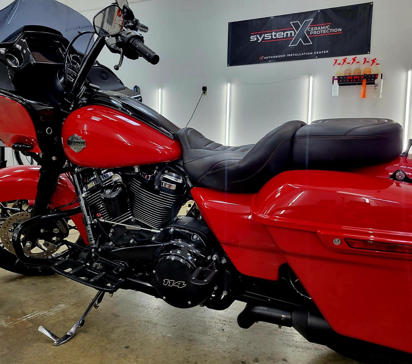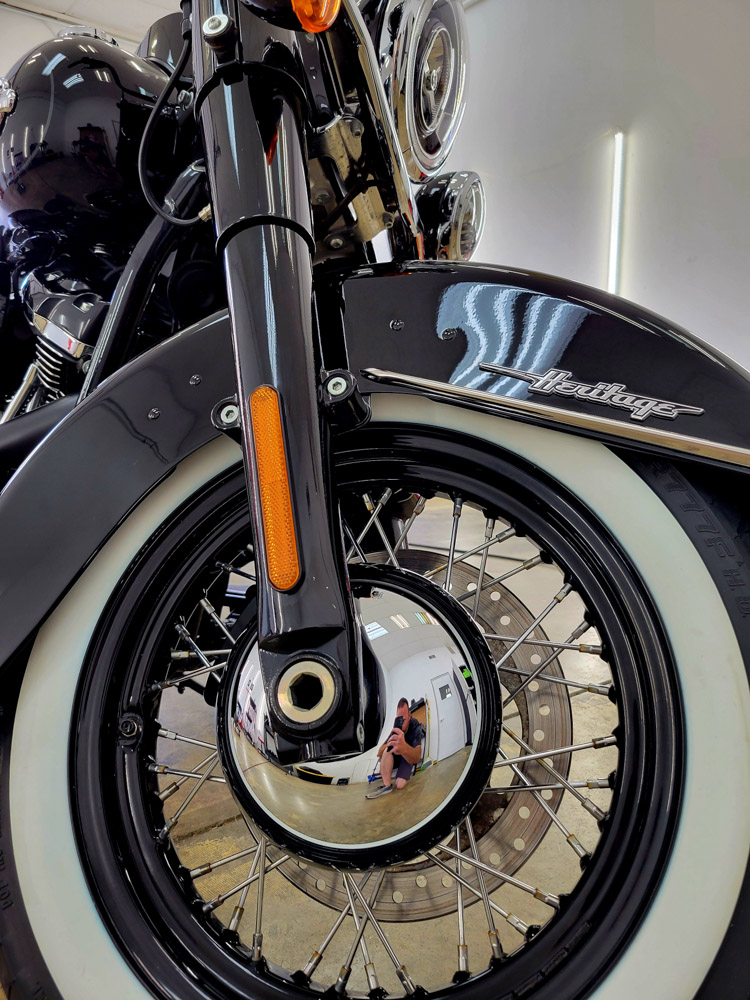 Our motorcycle detailing services will leave your ride looking good as new, whether you choose our standard motorcycle detail that includes our immaculate detail, clay bar, ceramic sealer, tire protectant, and a deep clean of your wheels and tires, or the Ceramic Gold Package that also includes leather seat conditioning, single step paint correction and a longer lasting ceramic coating.